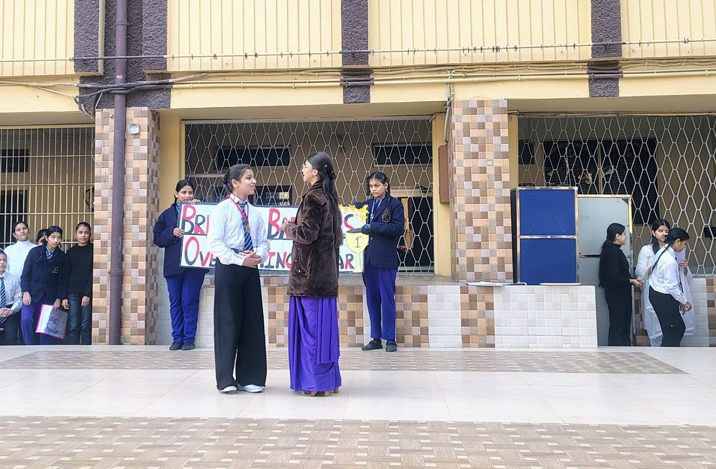 The assembly began with a soothing prayer, setting a reflective tone for the event.A captivating skit was presented, depicting the journey of a famous author who once struggled with stage fear. The performance showcased her transformation from a timid individual to a confident public speaker, highlighting the importance of practice and hard work in overcoming fears.